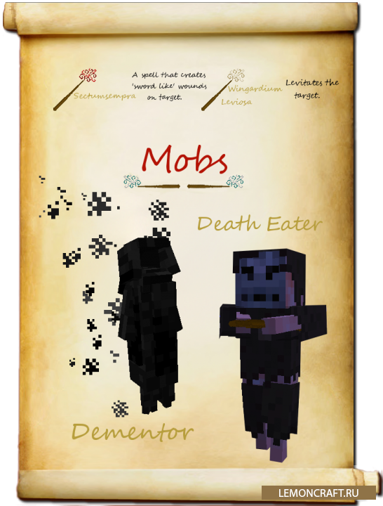 Мод по мотивам известной серии книг и фильмов о Гарри Поттере, с ним вы сможете скрафтить свою собственную волшебную палочку и овладеть большим количеством заклинаний. Для переключения между заклинаниями при использовании волшебной палочки применяйте сочетание Shift+ПКМ.