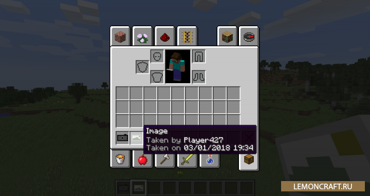 Мод на моментальную фотокамеру Camera добавит в игру отличный инструмент с помощью которого вы сможете делать моментальные фото от первого лица. Сделанное фото моментально оказывается на бумаге и вы можете повесть его, в красивой рамке в удобное для вас место.